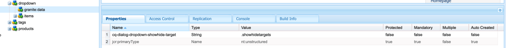 - Now on this node, add the property cq-dialog-dropdown-showhide-target with the